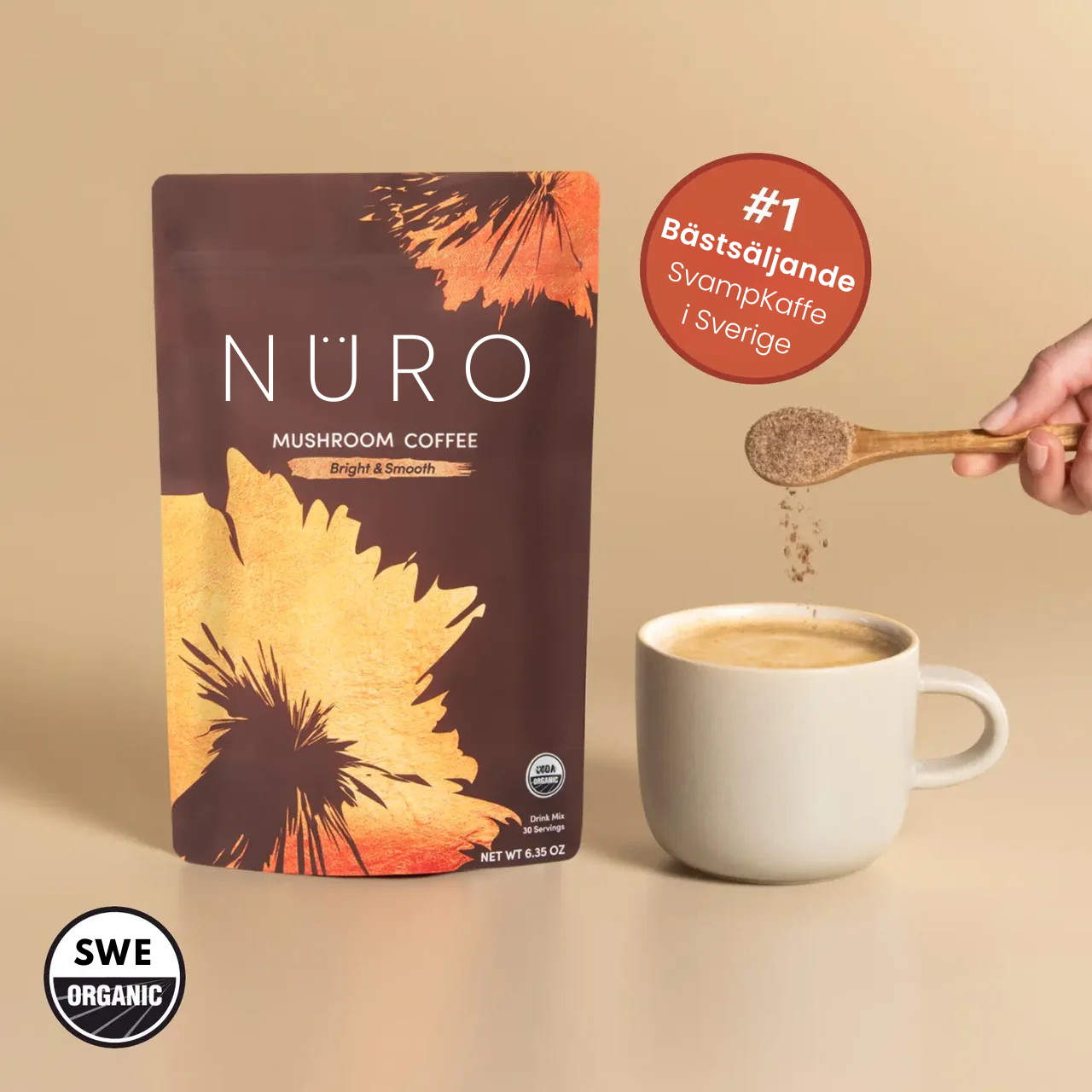 NURO är en blandning av ekologiskt kaffe och funktionella svampar som ger naturlig energi, fokus och balans – utan koffeinkrasch.